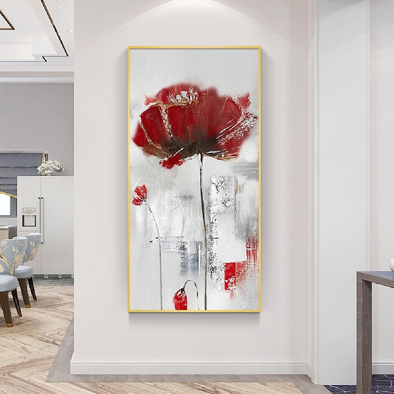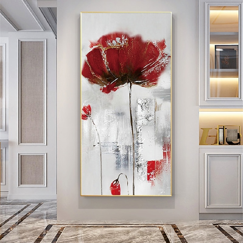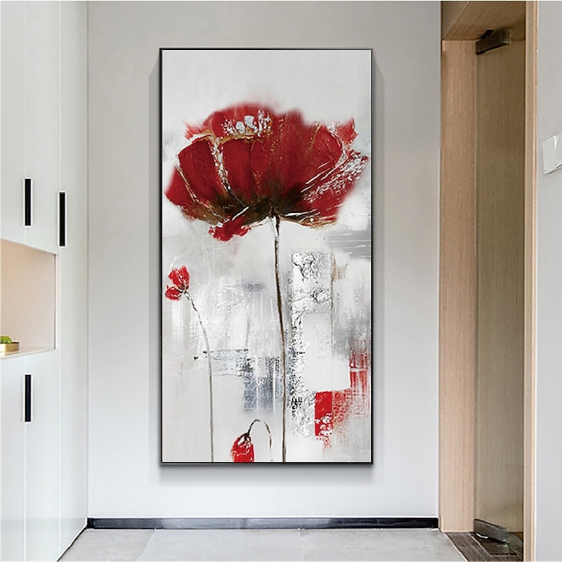 Handmade Hand Painted Wall Art contemporary Abstract Red Flower Home Decoration Decor Rolled Canvas No Frame Unstretched
