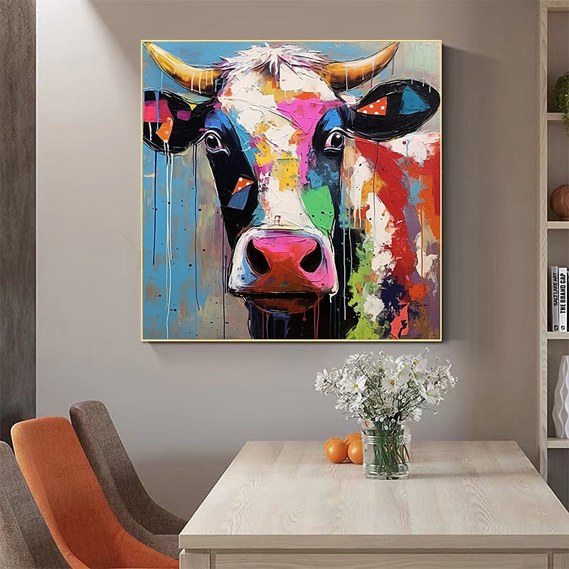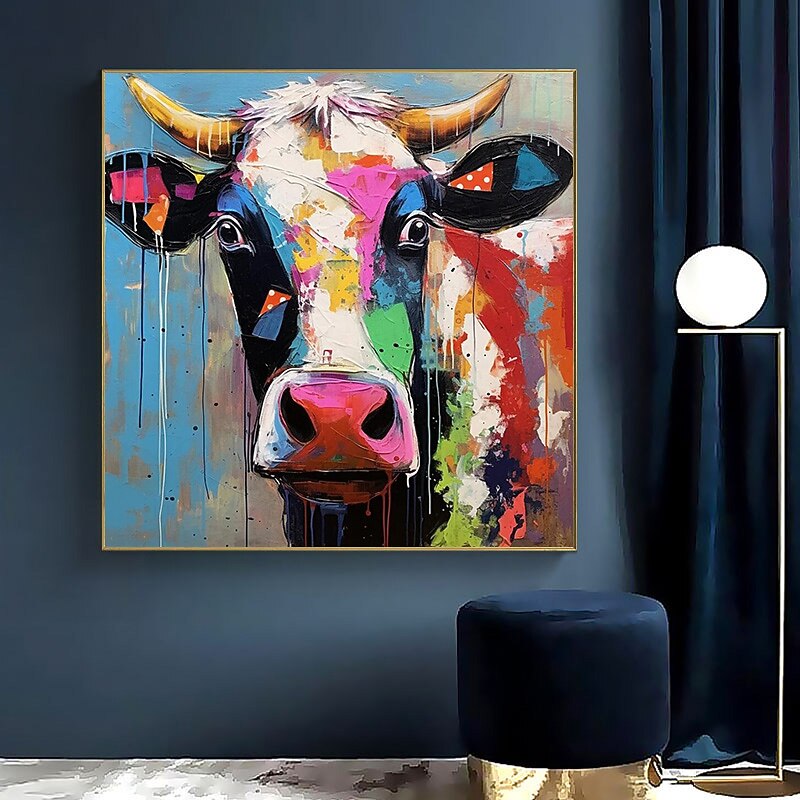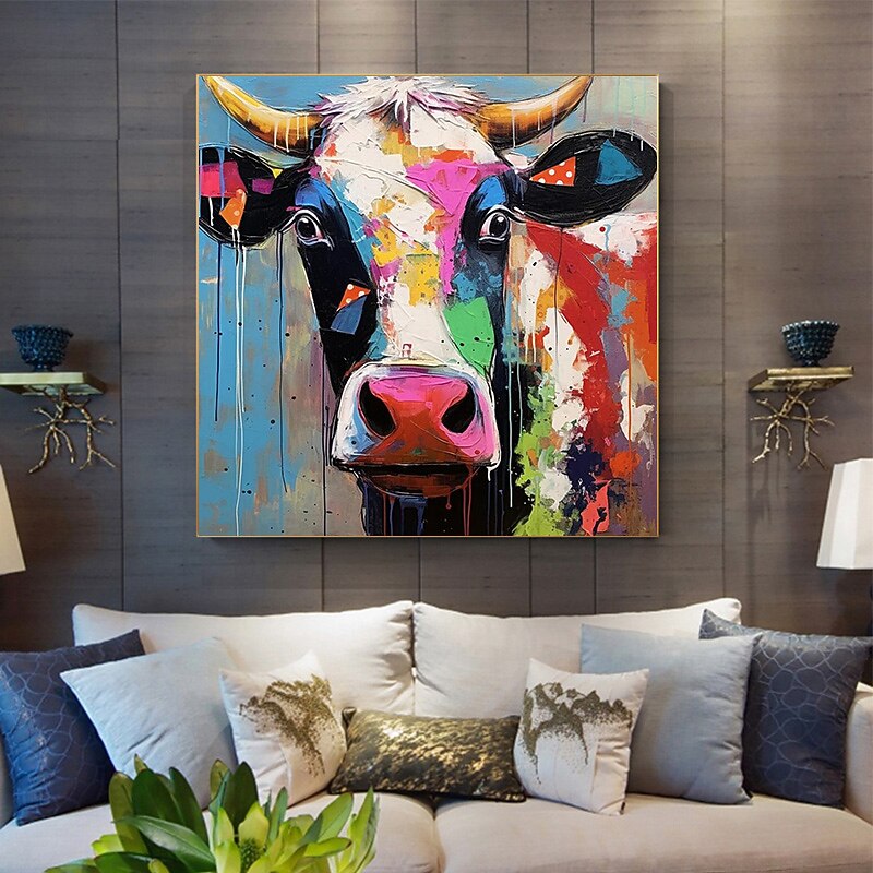 $100.99 - Hand-painted Colorful Cow Painting on Canvas Palette Knife Heavy Textured Painting Square Wall POP Art Farmhouse Cattle Artwork Gift No Frame 2025. Shop for cheap Animal Paintings online? Buy at lightinthebox.com on sale today!