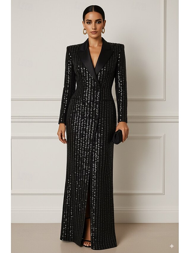 $159.99 - Black Tuxedo Blazer Dress Sheath / Column Formal Sequin Elegant Long Sleeve Floor Length Lapel Double Breasted 2025. Shop for cheap Tuxedo Dresses online? Buy at lightinthebox.com on sale today!