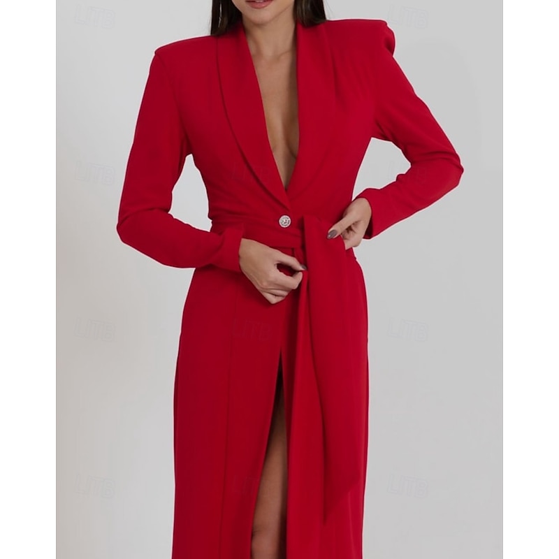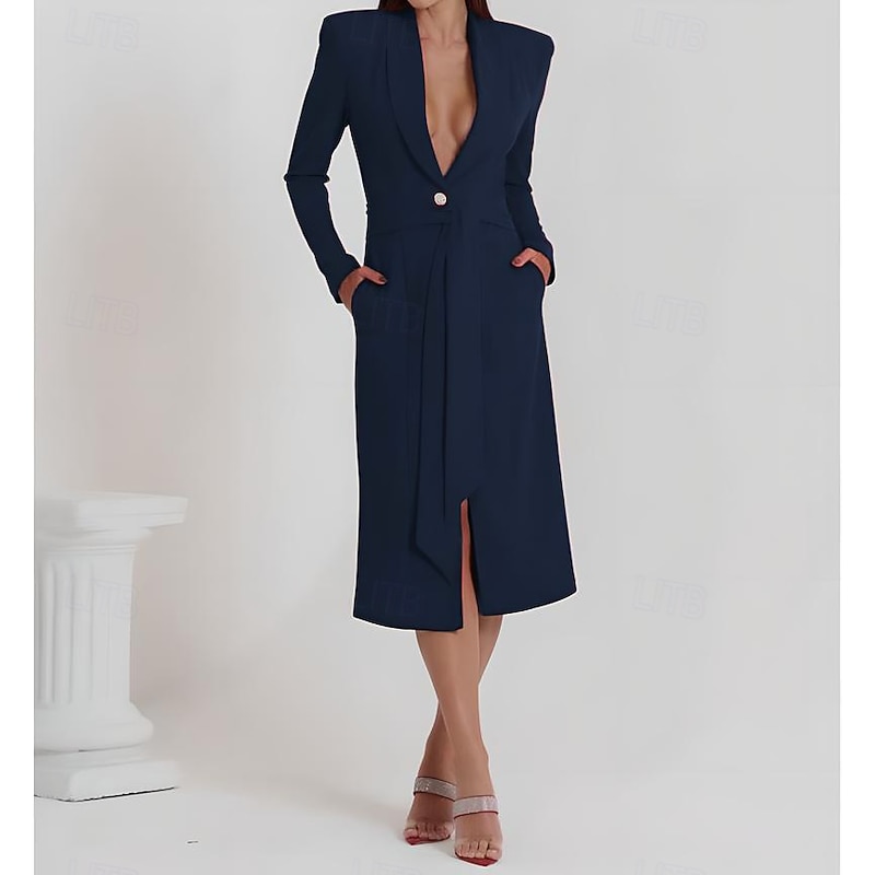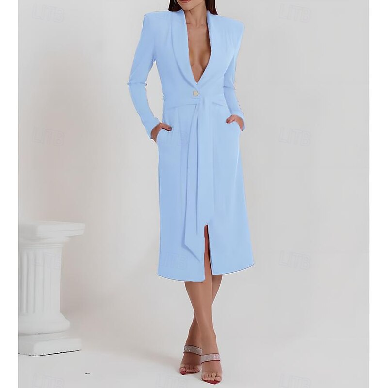 More information about Tuxedo Dress Sheath Formal Wedding Guest Stretch Crepe Elegant basic Long Sleeve Tea Length Shawl Lapel Lapel