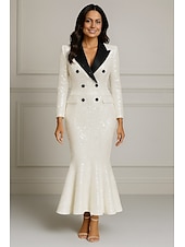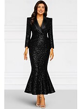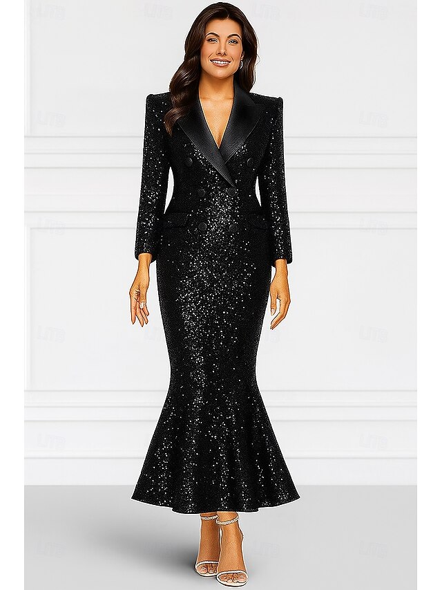 $169.99 - Tuxedo Dress Mermaid / Trumpet Formal Wedding Wedding Guest Sequin Elegant Glittering Long Sleeve Ankle Length Shirt Collar Notched Lapels 2025. Shop for cheap Tuxedo Dresses online? Buy at lightinthebox.com on sale today!