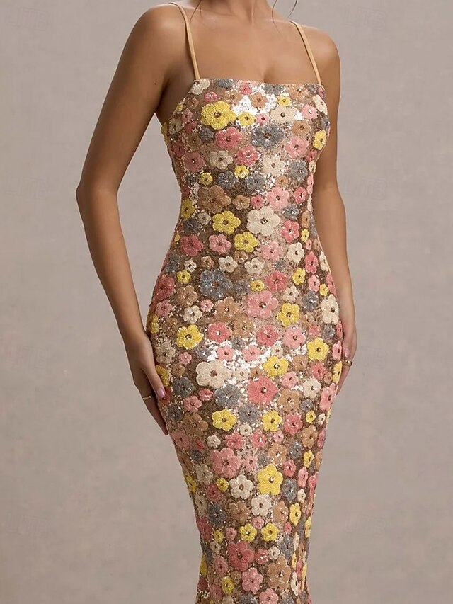 More information about Floral Sequin Mermaid / Trumpet Prom Dresses Elegant Dress Semi Formal Wedding Guest Floor Length Sleeveless StraplessDress