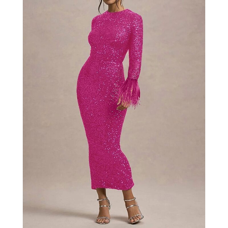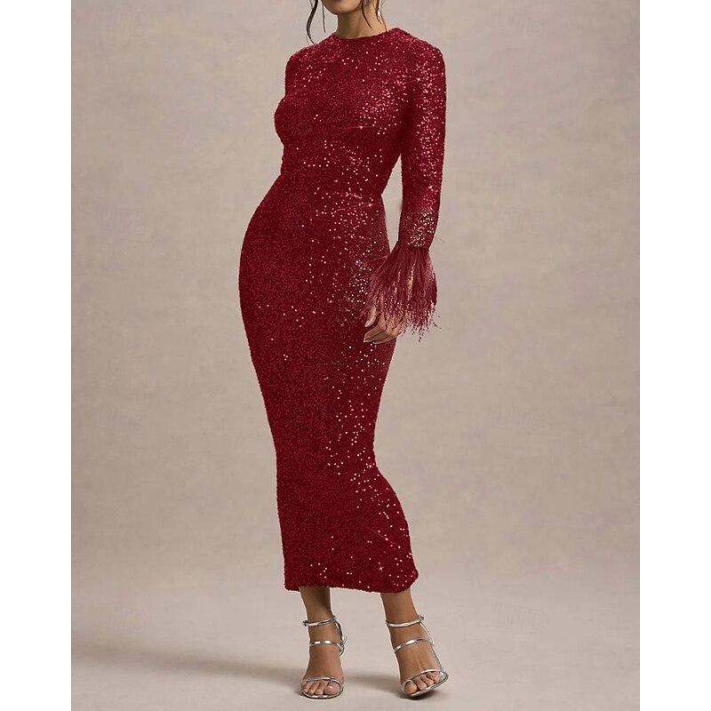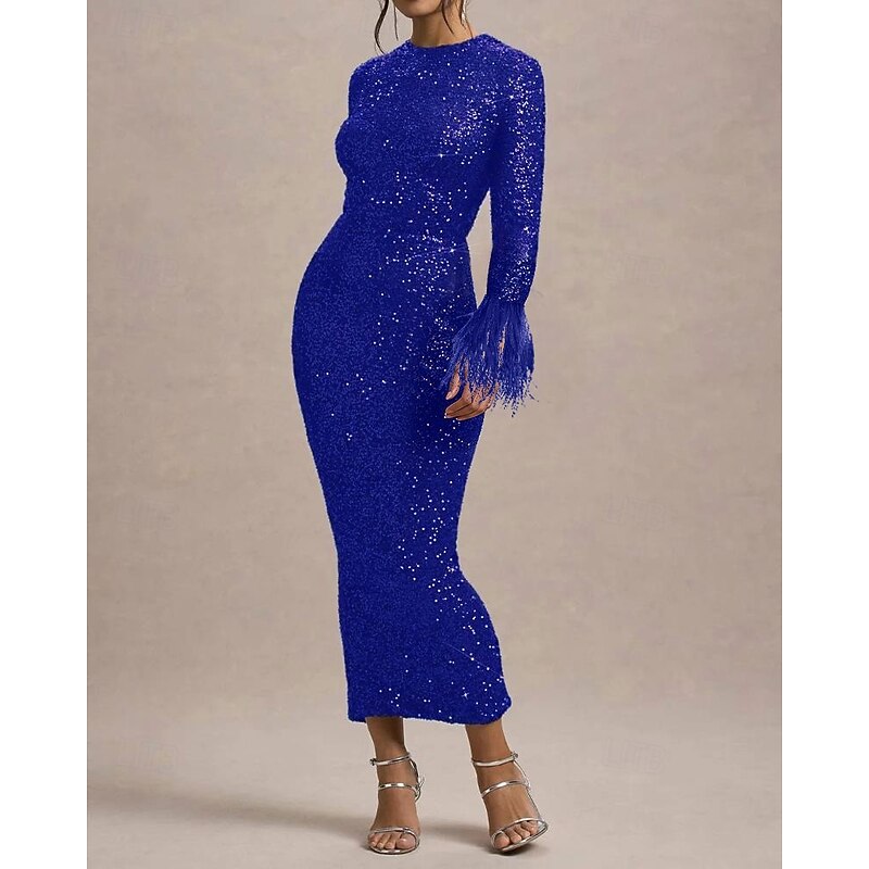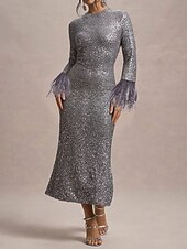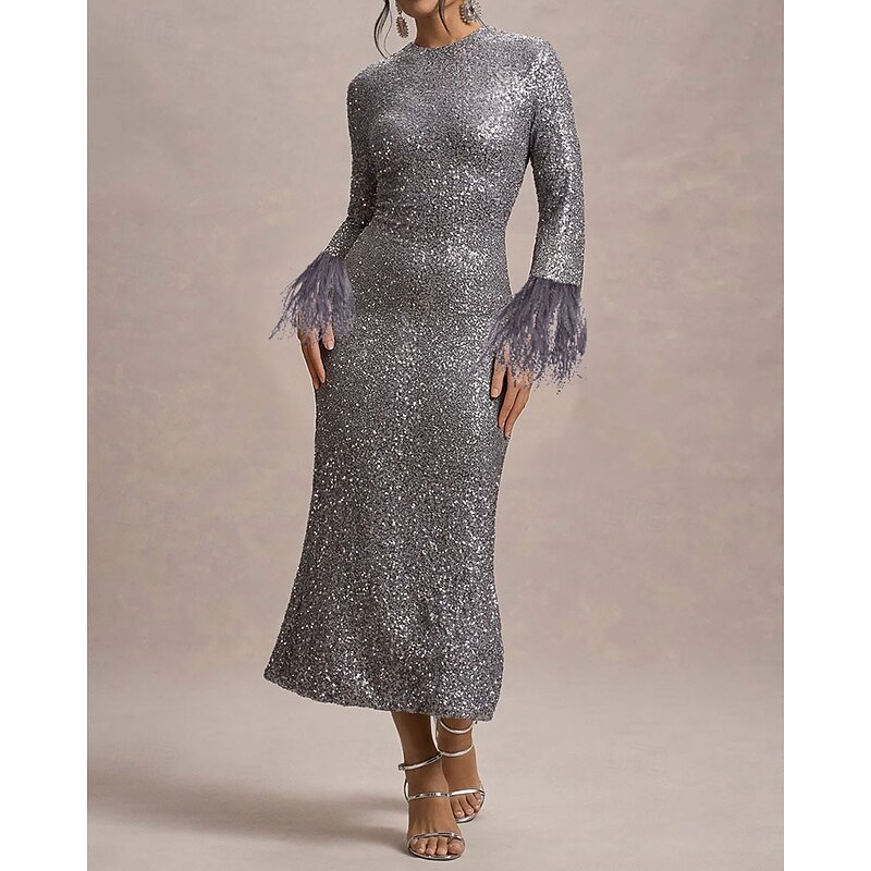 More information about Mermaid / Trumpet Evening Gown Elegant Dress Formal Semi Formal Gala Dress Wedding Floor Length Long Sleeve Crew Neck Stretch Sequined with Feather Sleeve