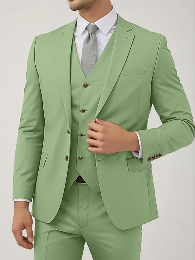 Why Choose Men's Wedding Party Suits Notch Lapel Sage Fashion Formal Solid Colored Standard Fit 3 Piece Single Breasted Two-buttons?