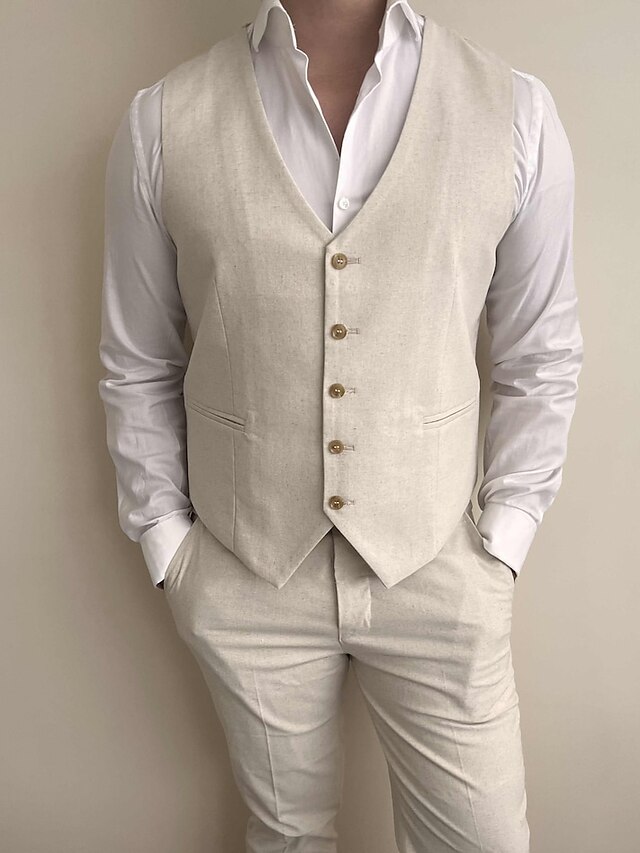 $73.99 - Men's Wedding Linen Suits V Neck Beige Solid Colored Tailored Fit 2 Piece 2025. Shop for cheap Casual Suits online? Buy at lightinthebox.com on sale today!