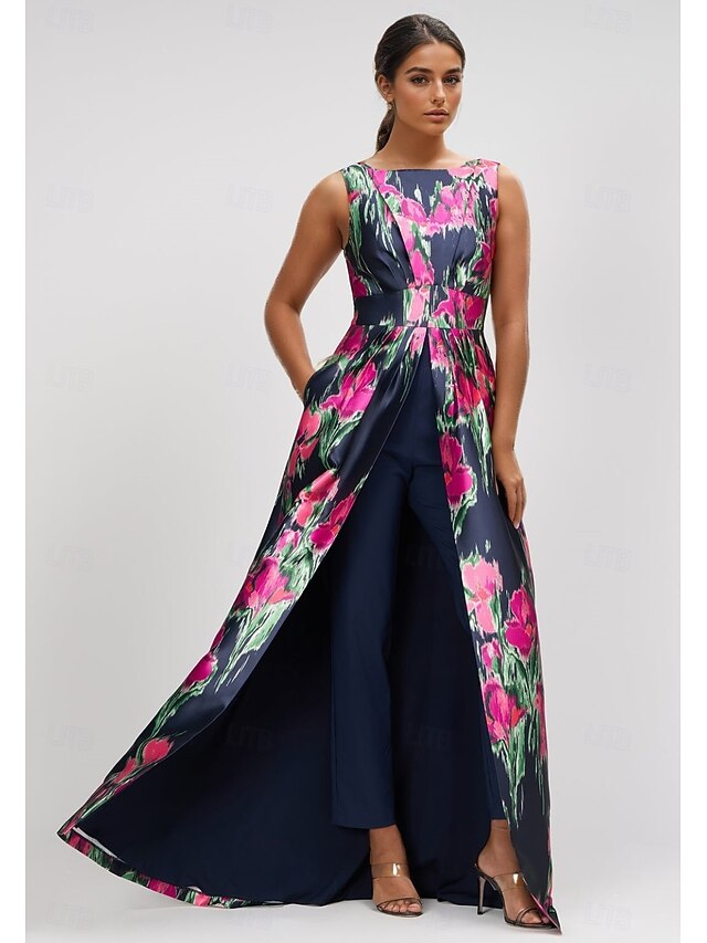 This Jumpsuits Mother of the Bride A-Line Evening Gown Elegant Dress Formal Wedding Guest Floor Length Sleeveless Boat Neck Satin with Floral Print Pocket combines elegant design with practical functionality. Every detail has been carefully considered to ensure you get the top possible experience. The first-class construction means this product will serve you well for years to come.