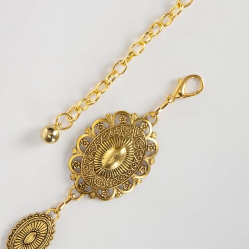 Women Western Concho Chain Belt - Fashion Gold Metal Waist Cowgirl Belt for Dresses Jeans