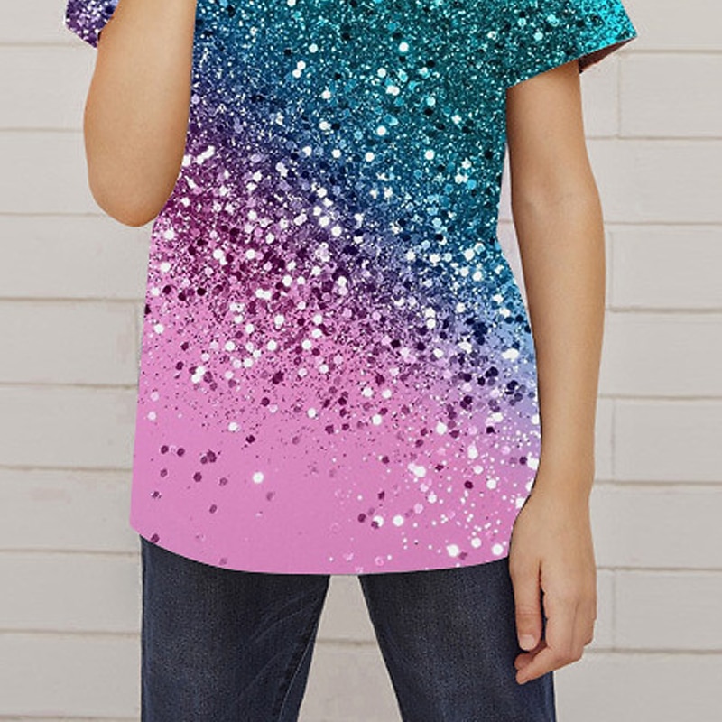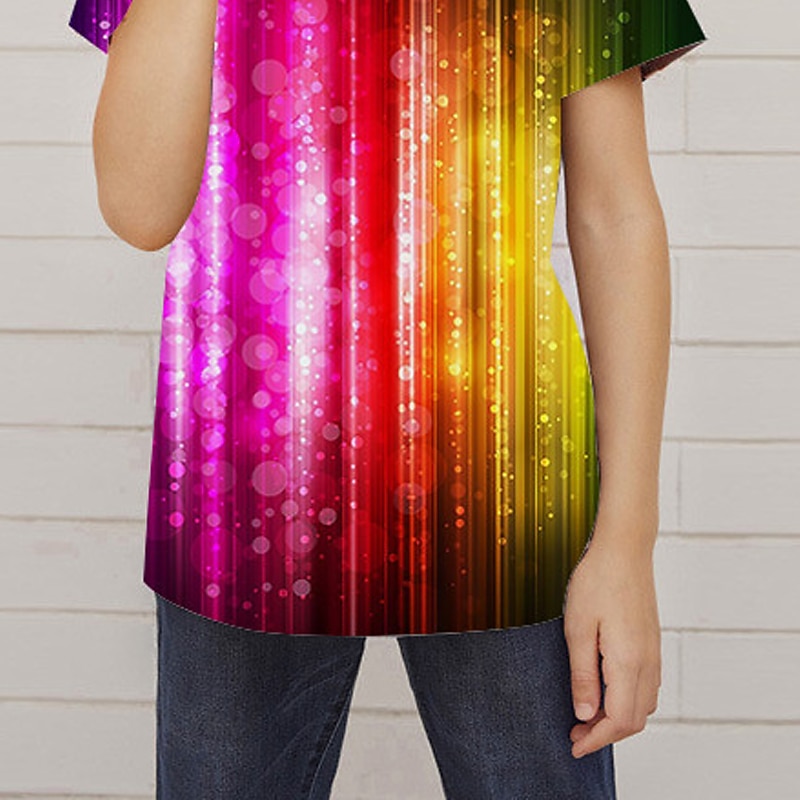 More information about Girls' 3D Color Block T shirt Short Sleeve 3D Print Summer Spring Active Fashion Cute Kids 3-12 Years Outdoor Daily Indoor Regular Fit
