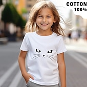 popular ! 100% Cotton Kids Girls' Black White Red Cat Tee Shirts Crew Neck Short Sleeve Outdoor Casual Daily Active Fashion Cute Crewneck Summer