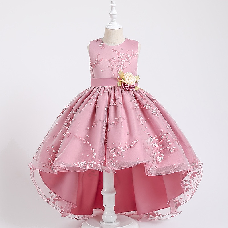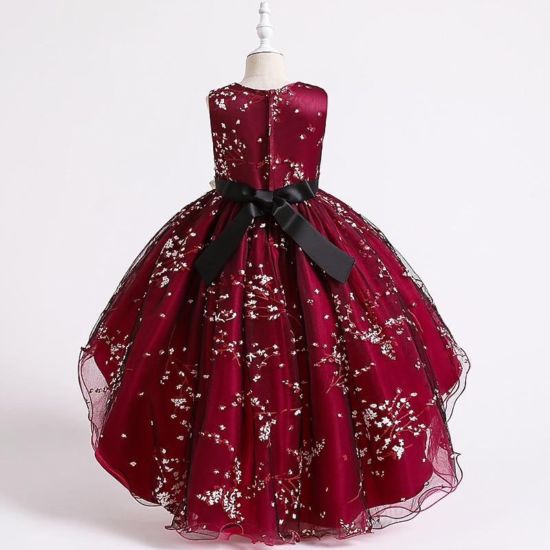 Why Choose Kids Girls' Dress Floral Solid Colored Sleeveless Wedding Party Ruched Mesh Cute Princess Polyester Asymmetrical Floral Embroidery Dress A Line Dress Tulle Dress Summer Spring 3-12 Years Pink Wine?