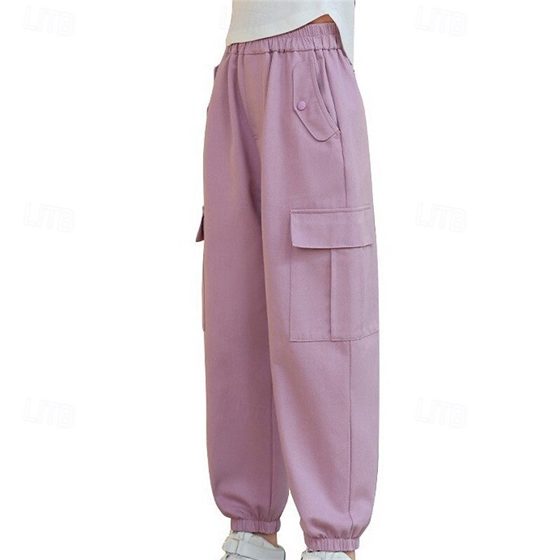 Kids Girls' Trousers Solid Color Sports Pocket School 4 years+ Spring Black Pink Purple 12