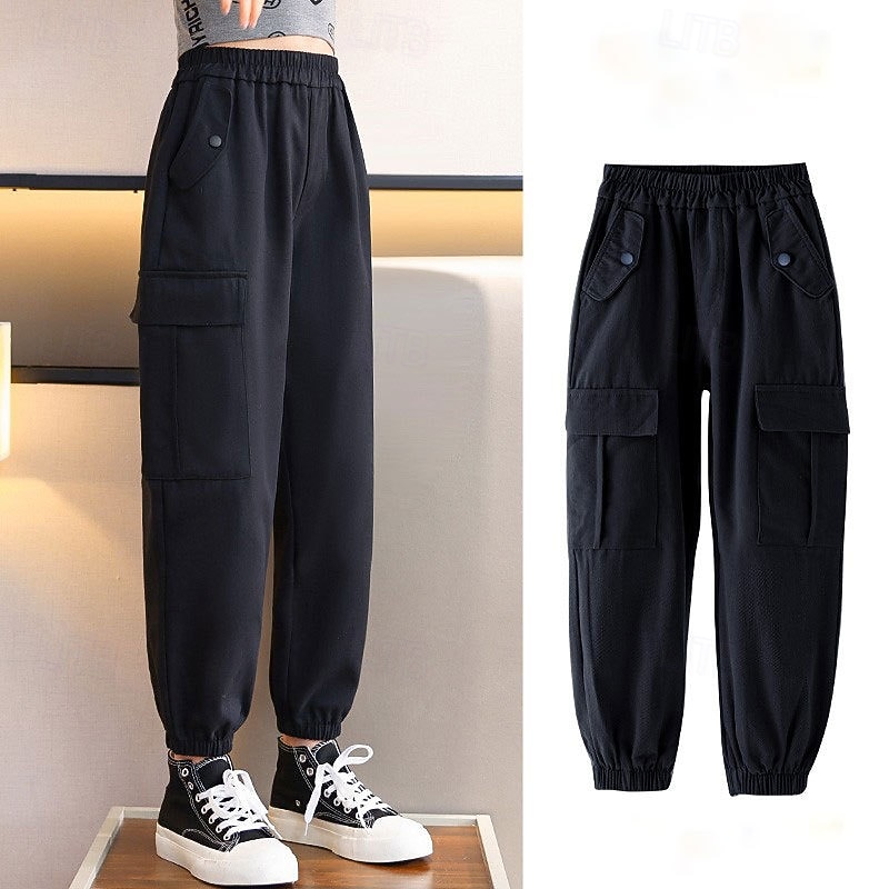 popular ! Kids Girls' Trousers Solid Color Sports Pocket School 4 years+ Spring Black Pink Purple