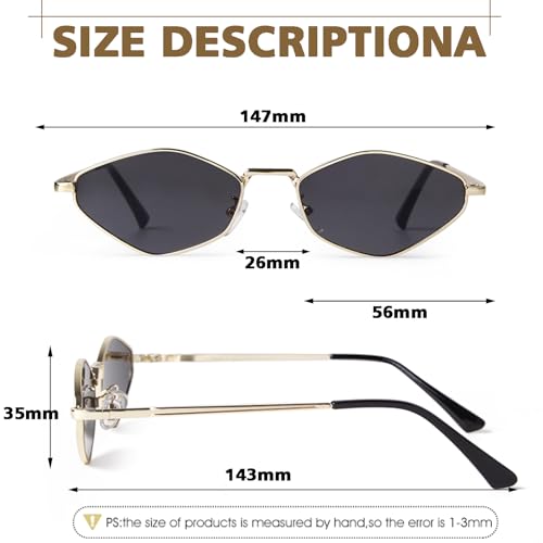 More information about Retro Small Narrow Irregular Sunglasses Womens Mens Trendy Chic Metal Sun Glasses 90s Sunnies UV400