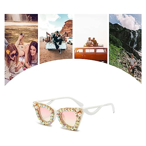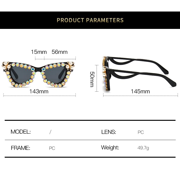 • special DESIGN - Full of diamond, pearls embellishments, luxurious sparkling crystal cat eye sunglasses frames with hollowed out temples designed, excluding the traditional frames style and make you more eye-catching in the crowd, flawless for matching different styles of outfits and looks.