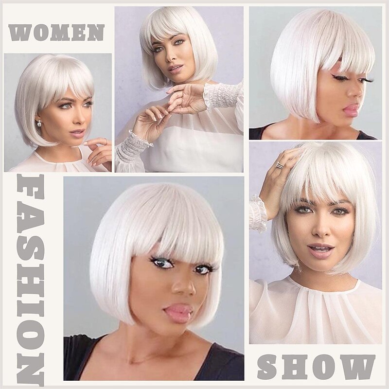 $23.99 - Short White Bob Wig Bangs Straight White Wig for Women Natural Synthetic Short White Wig Bangs for Daily Party Cosplay Halloween 2025. Shop for cheap Synthetic Trendy Wigs online? Buy at lightinthebox.com on sale today!