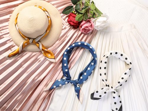 Women 1950s Polka Dots Vintage Scarf, Retro Square Silky Satin 50s Neckerchief Head Wrap Bandanas Neck Scarves 5
