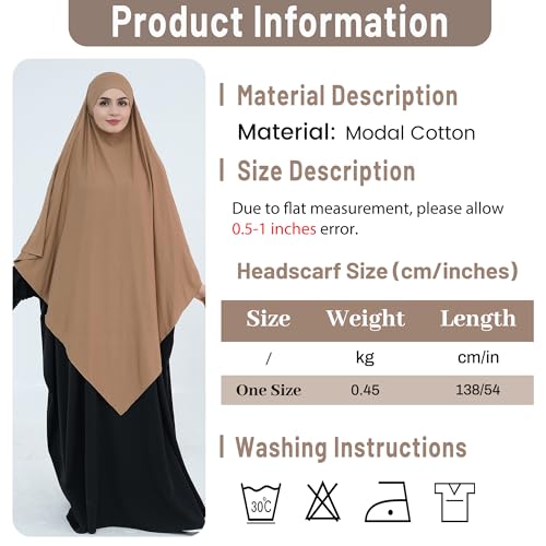 • [Note] Machine washable, preferably hand wash. Avoid being pinched or scratched by sharp objects during use this prayer hijab. Please refer to our size chart to choose the right size of hijab scarf for you