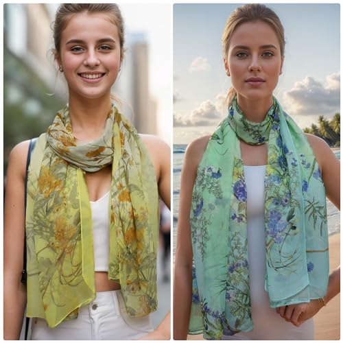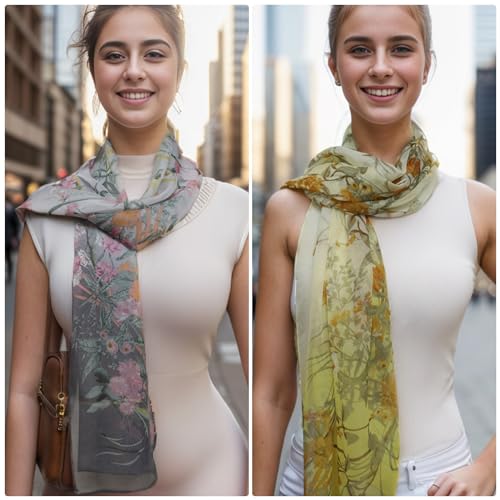 • The floral scarfs for women is made of chiffon. The fabric is super smooth, smooth, breathable and comfy to wear and meanwhile it is so lightweight and thin that can be fold into small part for convenient carry like travel. Suggest handwash with lukewarm water.