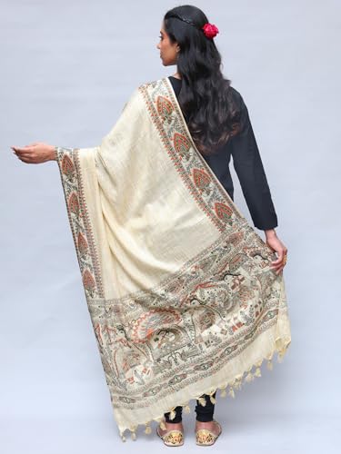 Women's Khadi Cotton Shawl with Madhubani Art Print | Beautiful Design Soft Weave Stole, Scarf for Girl 1