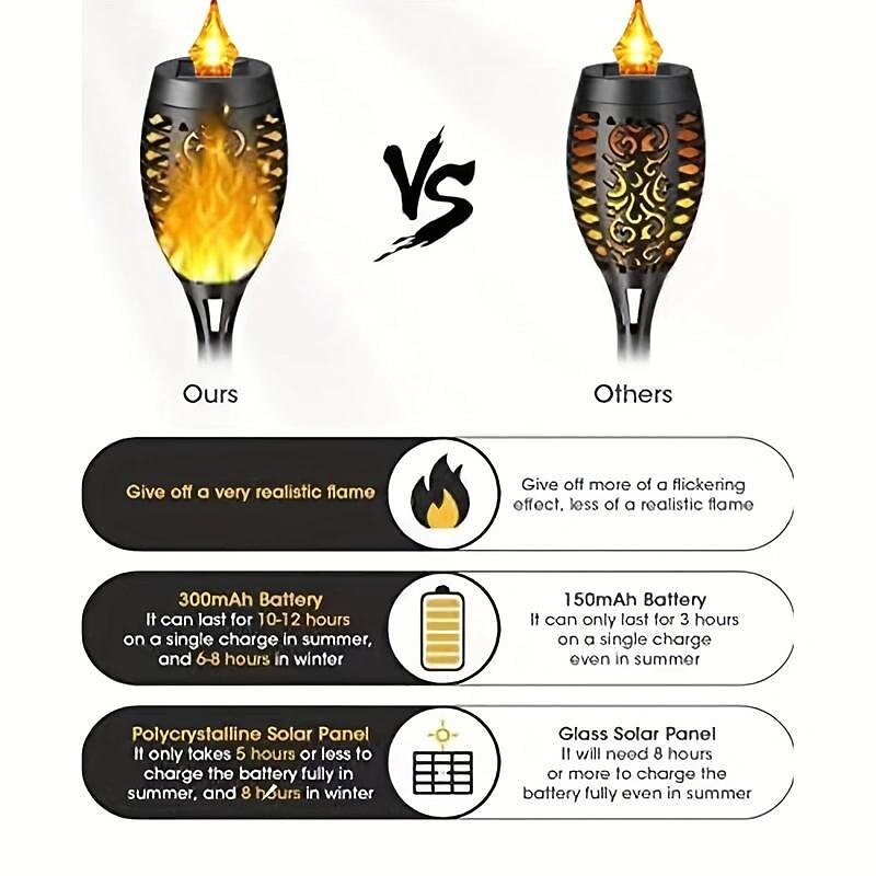 Why Choose Solar Outdoor Flickering Flame Lights, Halloween Christmas Solar Torch Pathway Lights Waterproof Lamp Landscape Decoration Lighting Decorate for Outside Garden Pathway Camping Barbecues?