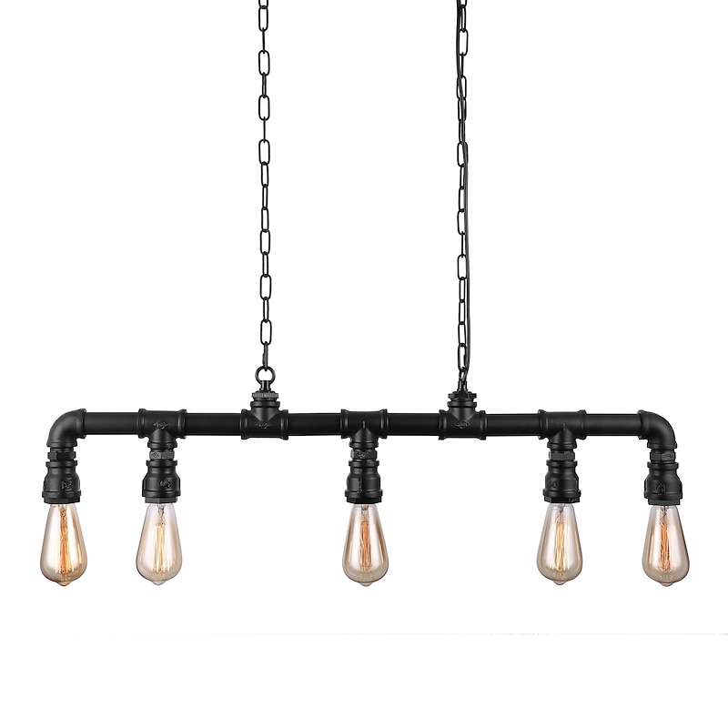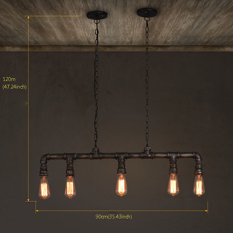 Why Choose 5-Light 90cm Industrial Pendant Light Vintage Wrought Iron Pipe in Black Finish Steampunk Chandelier Bar Bistro Restaurant Lighting?