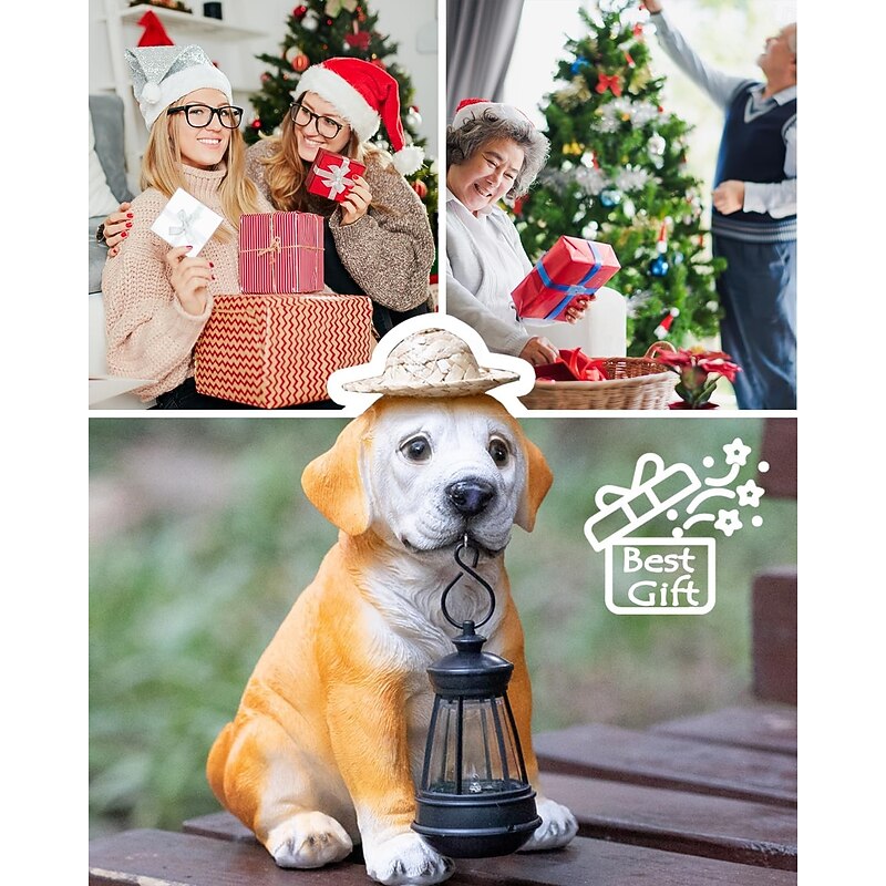 Solar-Powered Dog Statue Light with Retro LED Lantern - Outdoor Garden Decor for Patio, Porch, Balcony, Holiday Decoration 12