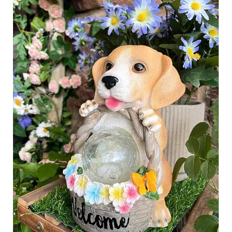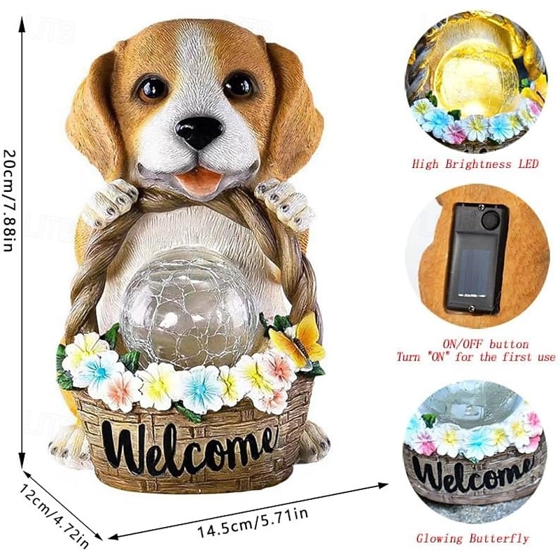 Solar-Powered Dog Statue Light with Retro LED Lantern - Outdoor Garden Decor for Patio, Porch, Balcony, Holiday Decoration 14