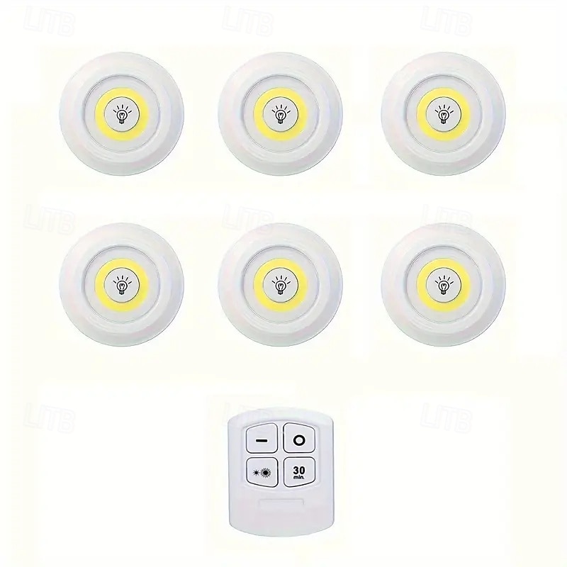 6 PCS Under Cabinet Lighting, LED Puck Under Cabinet Lighting Kit,  Dimmable with Remote Control, LED Puck Lights, for Kitchen Bedroom Wardrobe 1