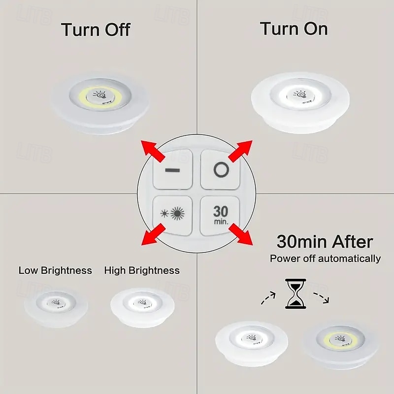 6 PCS Under Cabinet Lighting, LED Puck Under Cabinet Lighting Kit,  Dimmable with Remote Control, LED Puck Lights, for Kitchen Bedroom Wardrobe 4