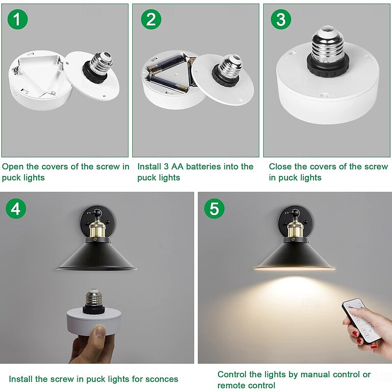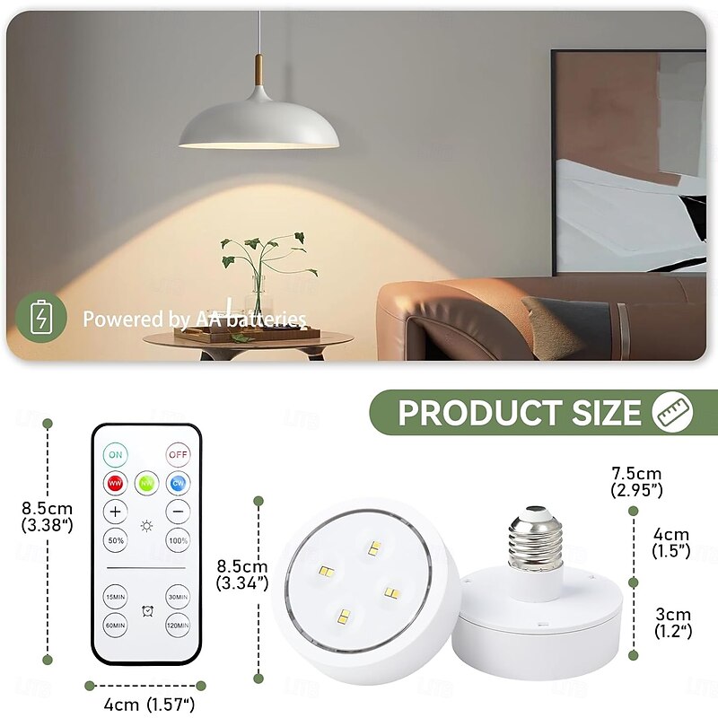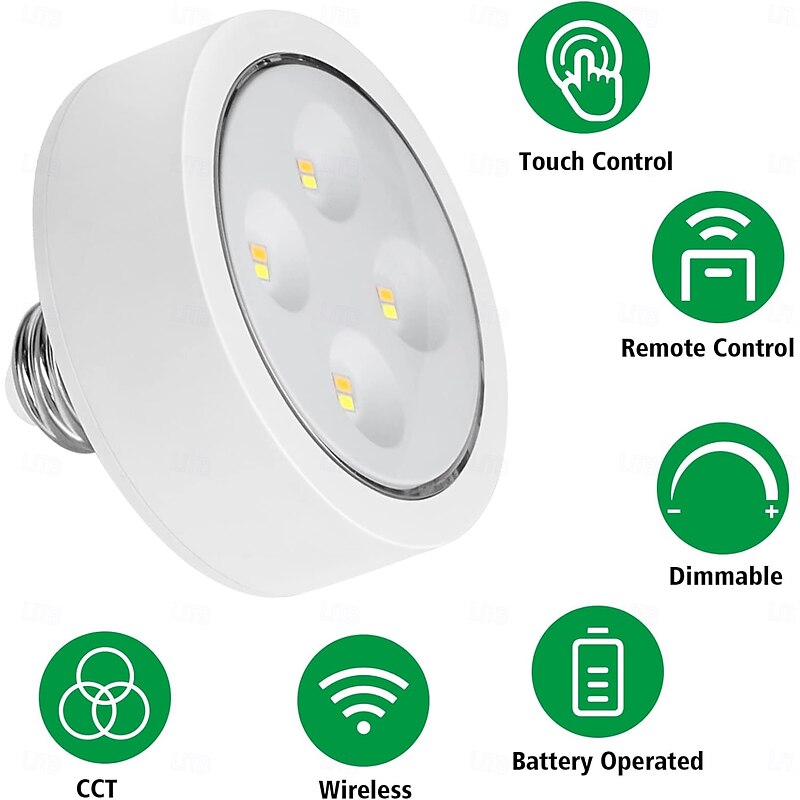 $14.49 - Battery Operated Light Bulbs Sets of 2 LED Puck Lights with Remote Control AA Battery Bulb Dimmable E26 Screw in Type for Non Electric Pendant Light and Wall Sconce 2025. Shop for cheap Cabinet Light online? Buy at lightinthebox.com on sale today!