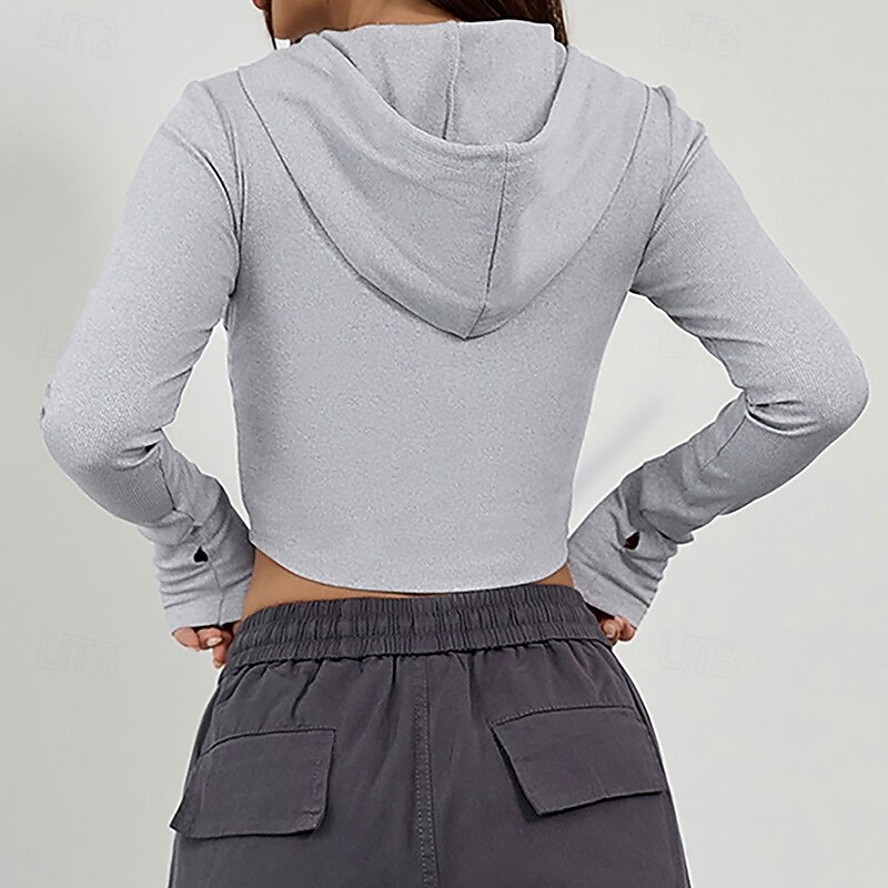 popular ! Women's Hoodie Crop Shirt Breathable Full Zip Long Sleeve Sports Solid Color Top For Gym Athletic Running Activewear
