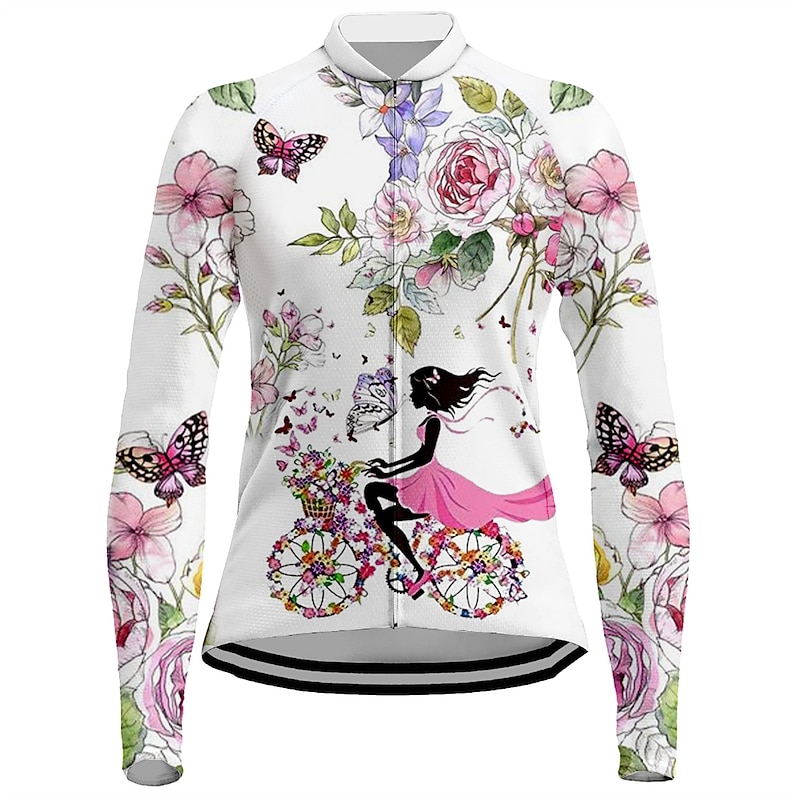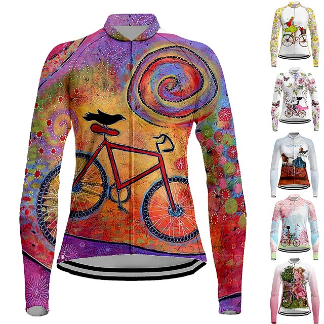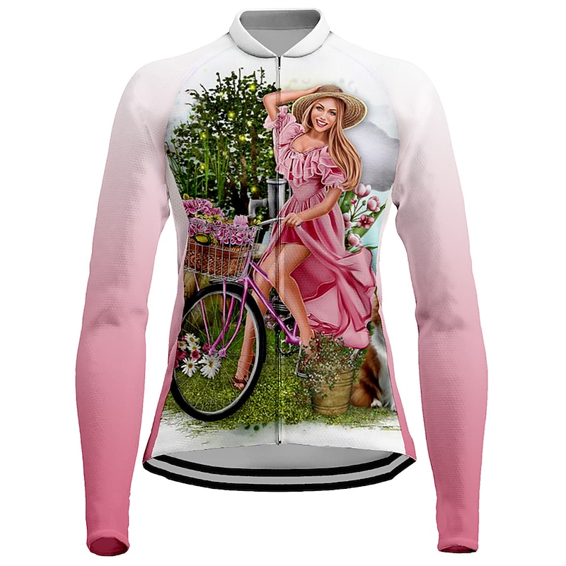 popular ! Women's Cycling Jersey Dog Funny Long Sleeve Bike Jersey Top with 3 Rear Pockets Mountain Bike MTB Road Bike Cycling expedient Dry Reflective Strips Back Pocket Moisture Wicking Sports White Yellow Pink