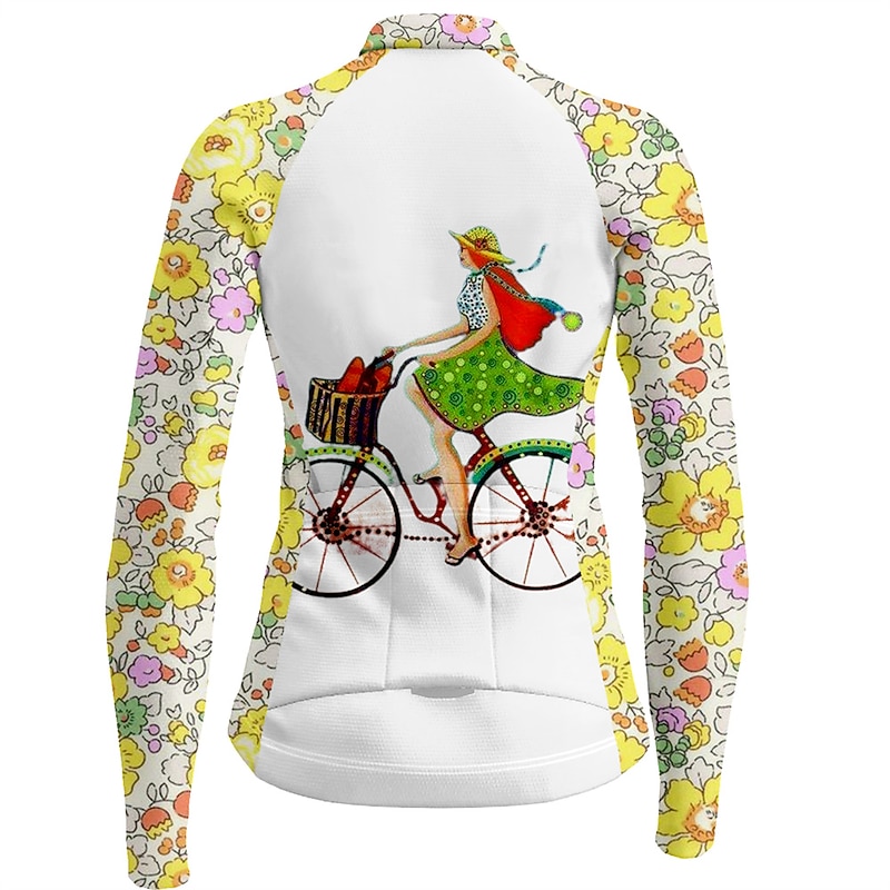 Women's Cycling Jersey Dog Funny Long Sleeve Bike Jersey Top with 3 Rear Pockets Mountain Bike MTB Road Bike Cycling Quick Dry Reflective Strips Back Pocket Moisture Wicking Sports White Yellow Pink 21