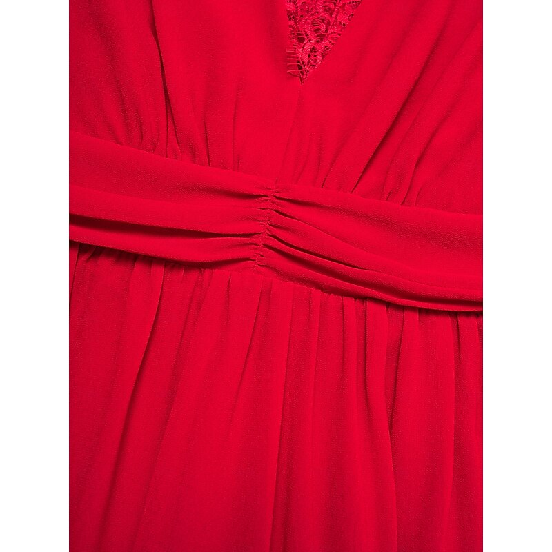 More information about Chiffon Red Lace V Neck Party Maxi Dress
