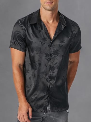 • Features: Men's button-down jacquard silky shirt design, fashion print texture including roses, flowers, leopard, metallic color, solid color, lapel combined with short sleeves, summer satin shirt, breathable and cool top