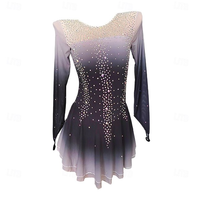Why Choose Figure Skating Dress Women's Girls' Ice Skating Dress Dark Purple Patchwork Mesh High Elasticity Training Competition Skating Wear enduring Crystal / Rhinestone Long Sleeve Ice Skating Figure Skating?