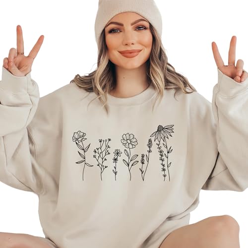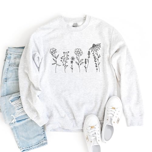 Why Choose Flower Sweatshirt, Minimalist Wildflower Sweatshirt, Cute Floral Flower Sweater, Girlfriend Valentines Day Gift Ideas, Unisex Graphic Crewneck Sweatshirt?