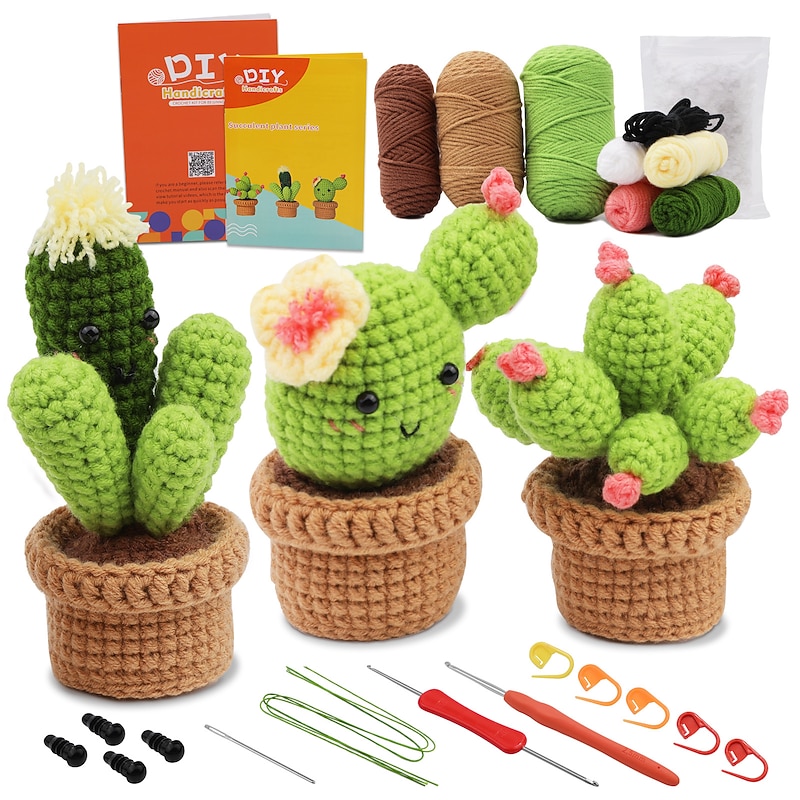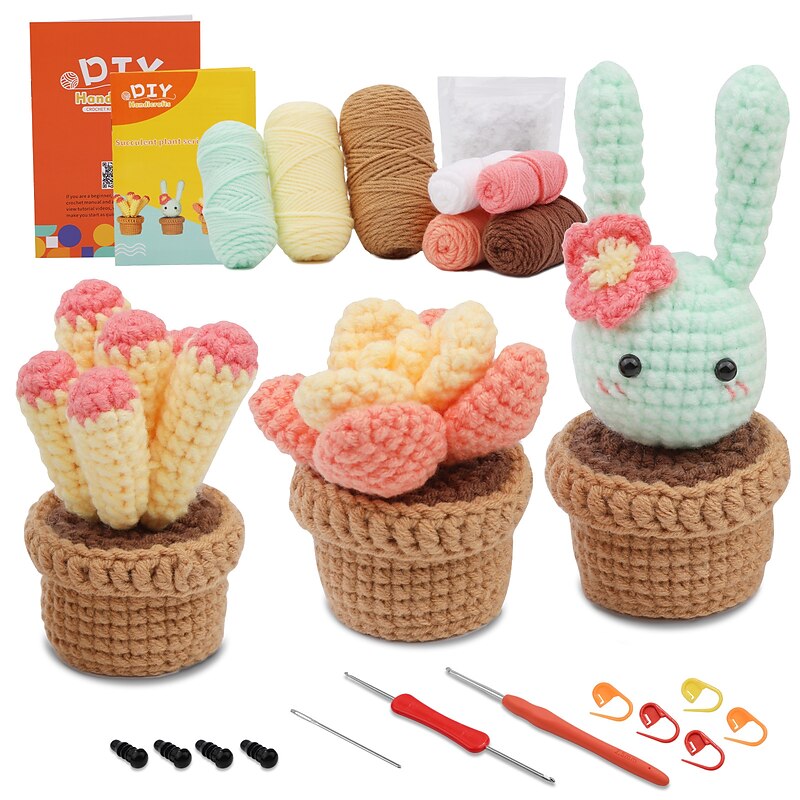 popular ! Crochet Kit for Beginners, Beginner Crochet Starter Kit with Step-by-Step Video Tutorials, Beginner Crochet Kit for Adults Kids, Knitting Kit for BeginnersThe Same Type Of Succulent Potted Cactus Crochet Wool Material Bag Is Hand Woven
