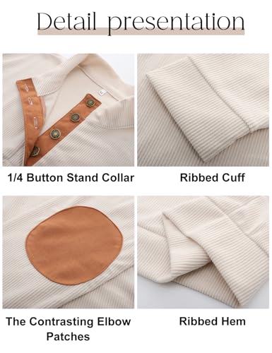 Why Choose COZYPOIN Men's Corduroy Sweatshirts Casual Stand Collar Button Long Sleeve Henley Pullover Sweater with Elbow Patches(Beige-XL)?