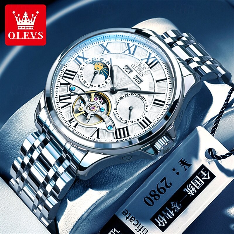$73.99 - New Olevs Brand Men'S Business Stainless Steel Band Watch Moon Phase Double Calendar 24-Hour Indication Automatic Mechanical Watch Simple Leisure Sports Men'S Wristwatch 2025. Shop for cheap Mechanical Watches online? Buy at lightinthebox.com on sale today!