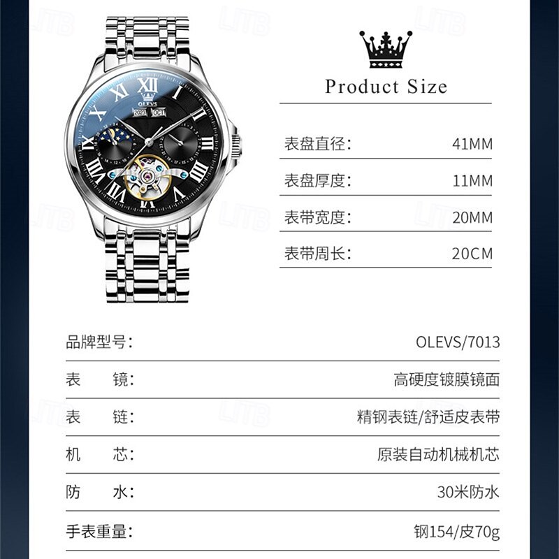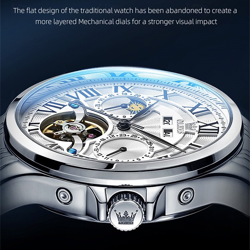 Why Choose newly-released Olevs Brand Men'S Business Stainless Steel Band Watch Moon Phase Double Calendar 24-Hour Indication Automatic Mechanical Watch uncomplicated Leisure Sports Men'S Wristwatch?