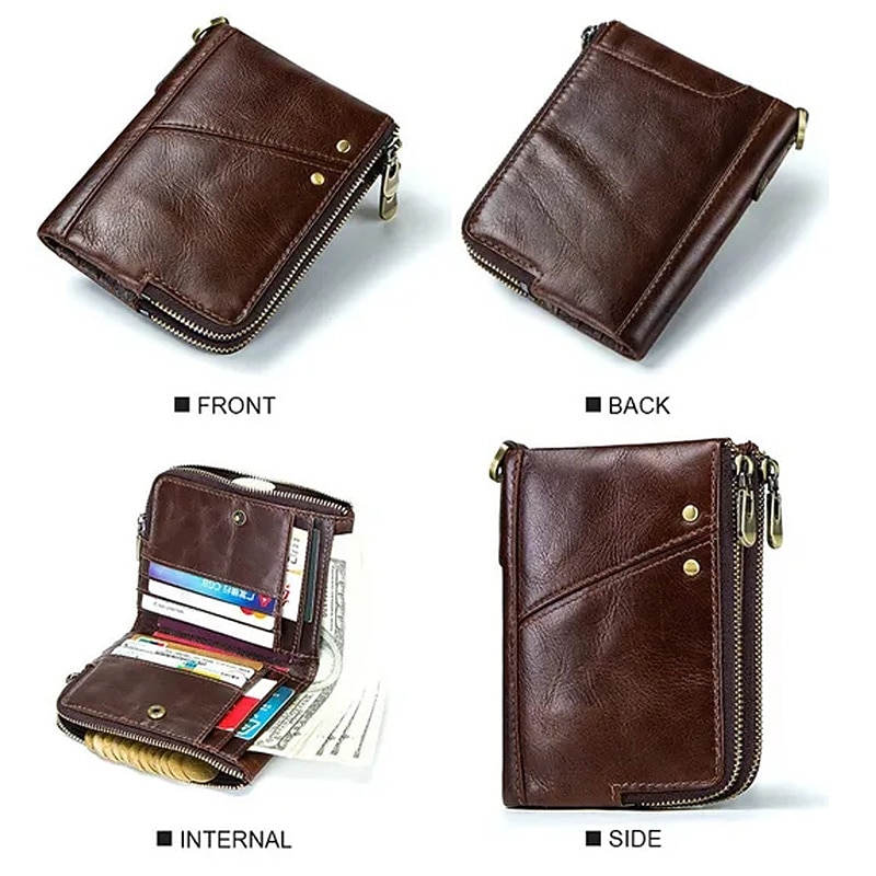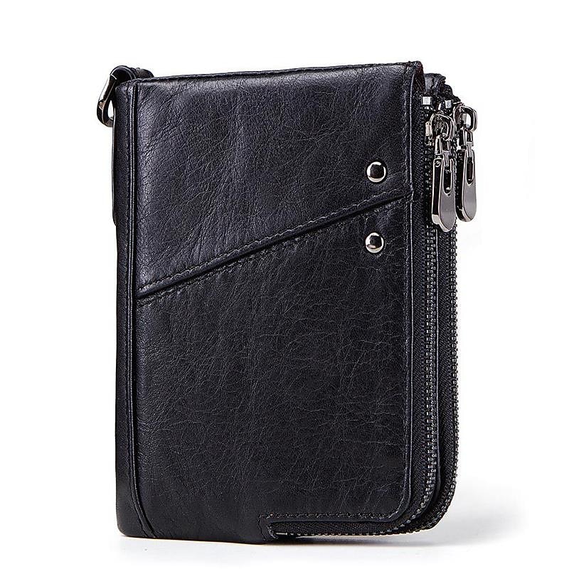 More information about Anti-theft Brush RFID Leather Men's Wallet Multi-function Double zipper Vertical Wallet Top layer leather fashion casual change bag