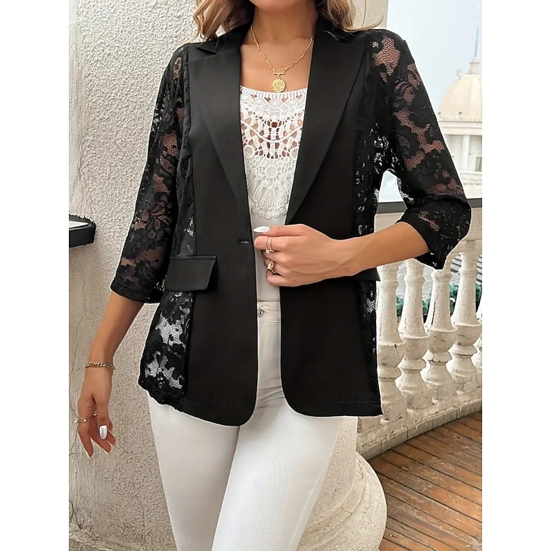 This Women's Blazer relaxing Breathable Lace Patchwork Elegant Casual Plain Office Street Casual Daily Wear Single Breasted Regular Turndown Regular Fit 3/4 Length Sleeve Outerwear Black Summer combines elegant design with practical functionality. Every detail has been carefully considered to ensure you get the best possible experience. The superior construction means this product will serve you well for years to come.