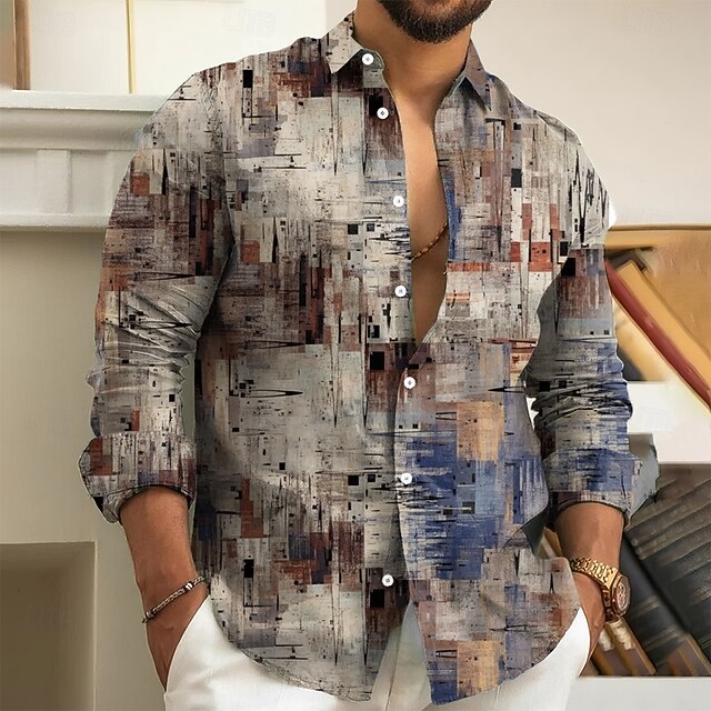 $25.99 - Men's Geometric Color Block Patchwork Shirt Button Up Shirt Long Sleeve Vintage Retro Holiday Casual Daily Spring Fall Turndown 3D Print Collared Shirts Blue Gray 2025. Shop for cheap Geometric Pattern online? Buy at lightinthebox.com on sale today!