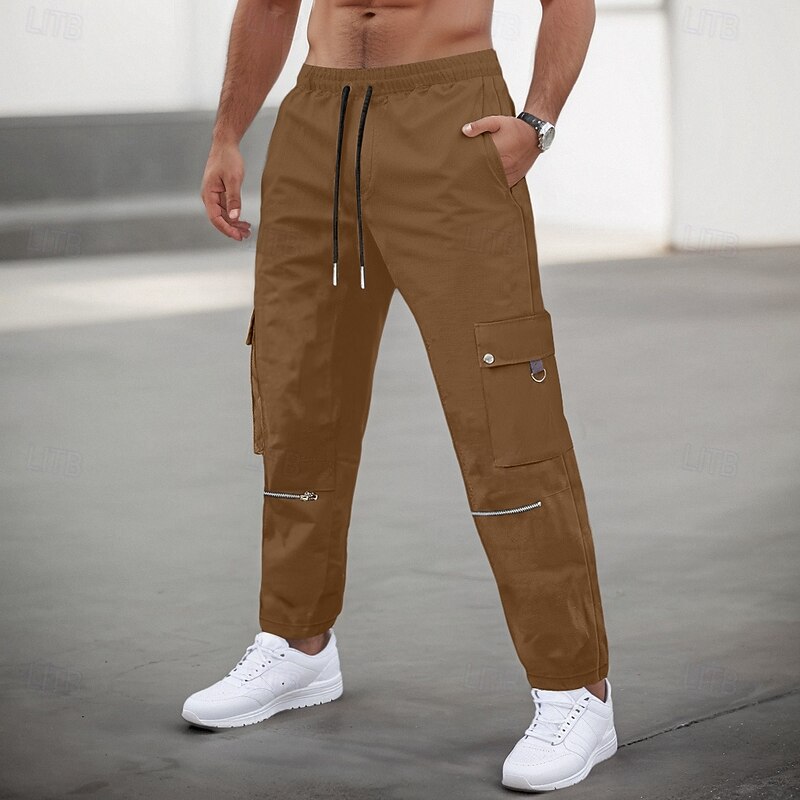More information about Men's Cargo Pants Cargo Trousers Trousers Casual Pants Zipper Drawstring Elastic Waist Plain Comfort silky Full Length Outdoor Daily Running Fashion Streetwear Black Brown