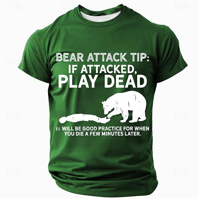popular ! Men's Funny Bear Attack Graphic Short Sleeve T-Shirt - Play Dead Dark Humor Tee