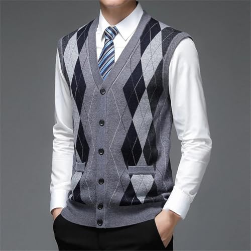 Men's Argyle Knit Sweater Vest Deep V-Neck Sleeveless Cardigan Casual Fashion Diamond Pattern Waistcoat 6