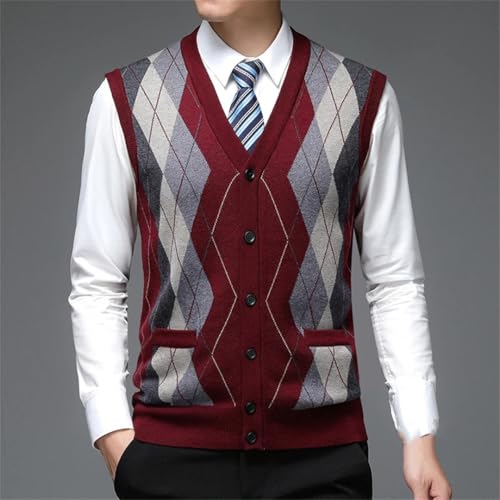 Men's Argyle Knit Sweater Vest Deep V-Neck Sleeveless Cardigan Casual Fashion Diamond Pattern Waistcoat 4