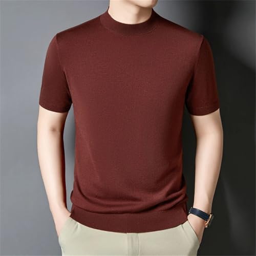 popular ! Men Summer Casual Mock Neck Thin Short Sleeve Slim Wool Knit Pullover