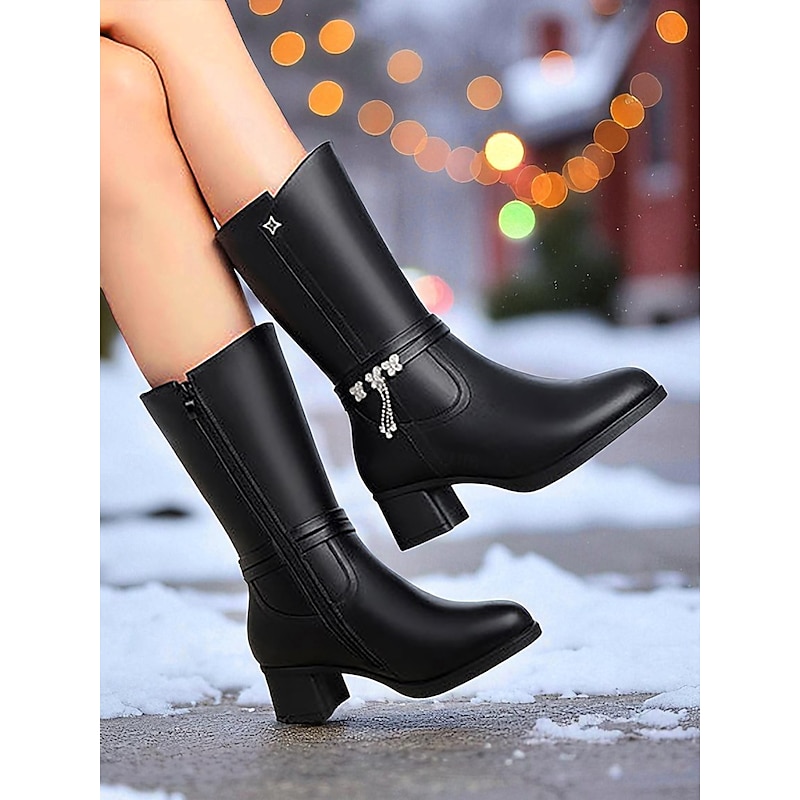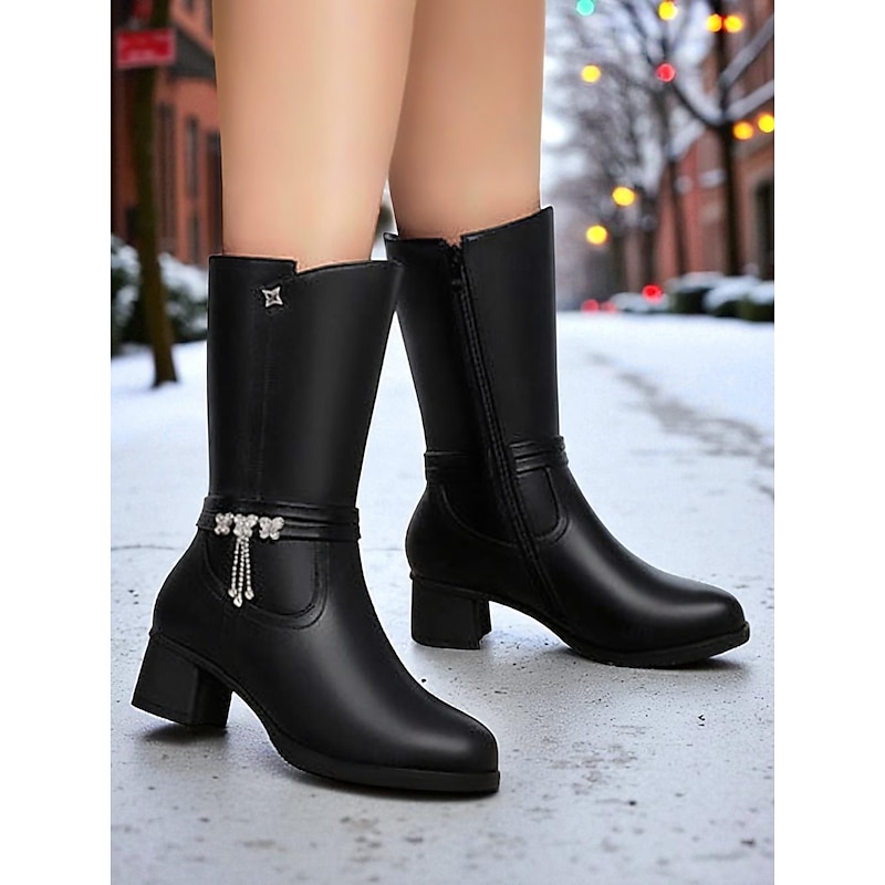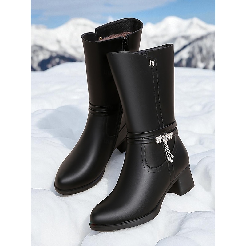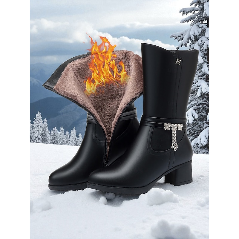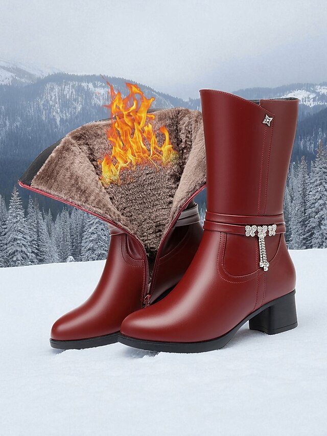 Why Choose Women's snug Fur Lined Mid-Calf Boots with Low Block Heel, Red Faux Leather Winter Snow Booties, Slip Resistant Cozy Fashion Shoes for Cold Weather, Outdoor Travel and Holiday Wear?